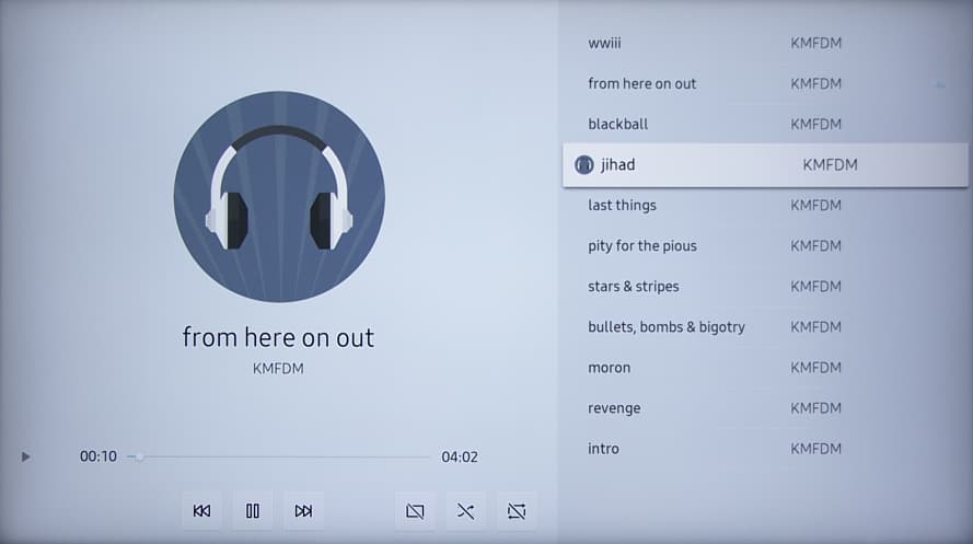 В случае аудиофайлов поддерживаются множество распространенных и не очень форматов, как минимум AAC, MP3, MP4, OGG, WMA (и с 24 бит), M4A, WAV, AIFF, MID и FLAC (расширение должно быть именно FLAC). Поддерживаются тэги как минимум в MP3, OGG и WMA (русские должны быть в Unicode) и картинки-обложки в MP3.