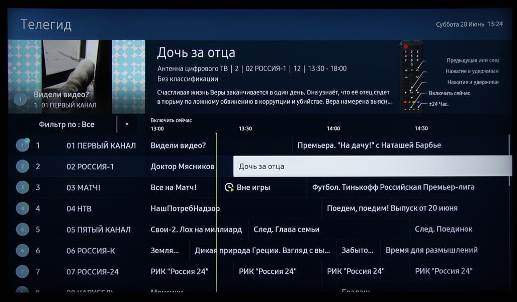 Есть хорошая поддержка электронной программы передач (если она передается) — можно посмотреть, что именно идет на текущем и других каналах, запрограммировать просмотр программы или сериала и т. д.