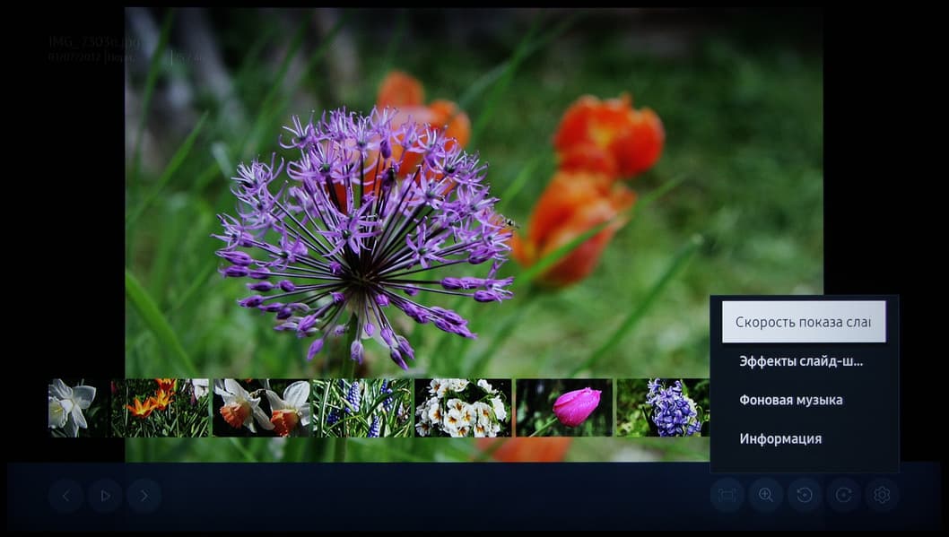 Нами подтверждена способность телевизора показывать растровые графические файлы в форматах JPEG, MPO (один ракурс), PNG и BMP, в том числе в виде слайд-шоу с эффектами перехода и под выбранную фоновую музыку. Изображения размером 3840×2160 пикселей выводятся один к одному по пикселям в истинном разрешении 4К, но есть особенности, о которых ниже.