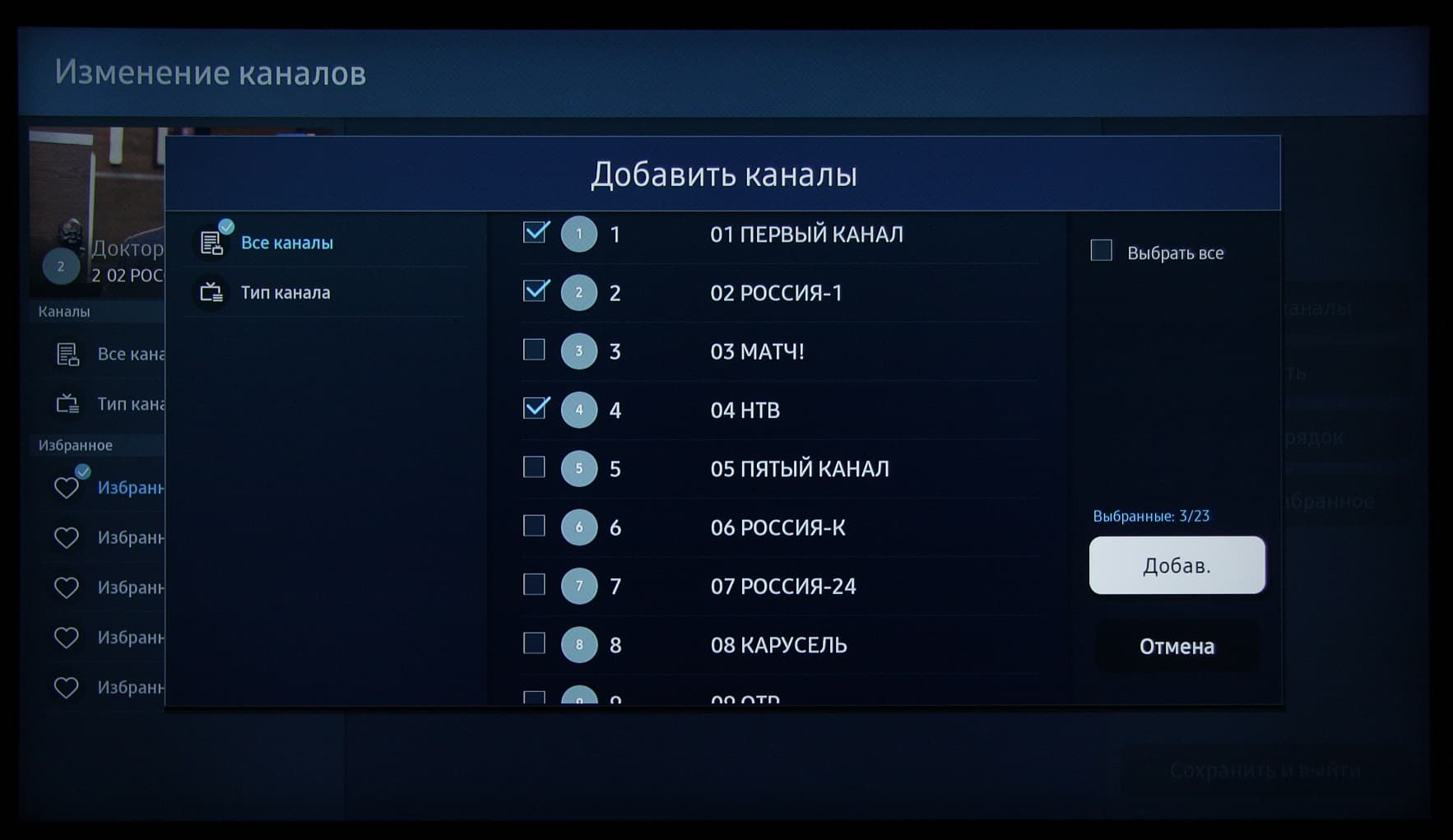 Присутствуют списки любимых каналов.