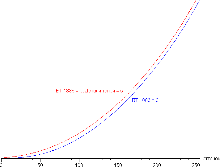 Игрокам может пригодиться функция, регулирующая видимость деталей в тенях, с названием Детали теней. Ниже показано как меняется гамма-кривая при крайнем значении этой настройки: