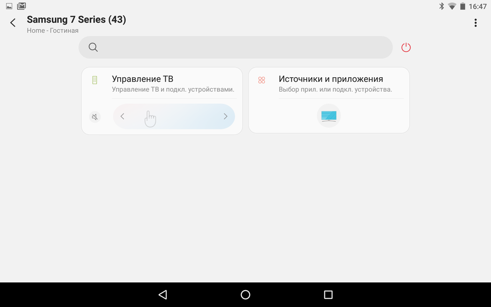 Кроме того, телевизором можно управлять посредством мобильного устройства с помощью фирменного приложения SmartThings для Android и iOS. В данном ПО телевизор представляется одним из устройств «умного дома», входящих в экосистему SmartThings. Для доступа к устройствам SmartThings используется облачный сервис, поэтому телевизором можно управлять из любого места, где есть доступ к Сети, хотя в данном случае это не дает особых преимуществ.