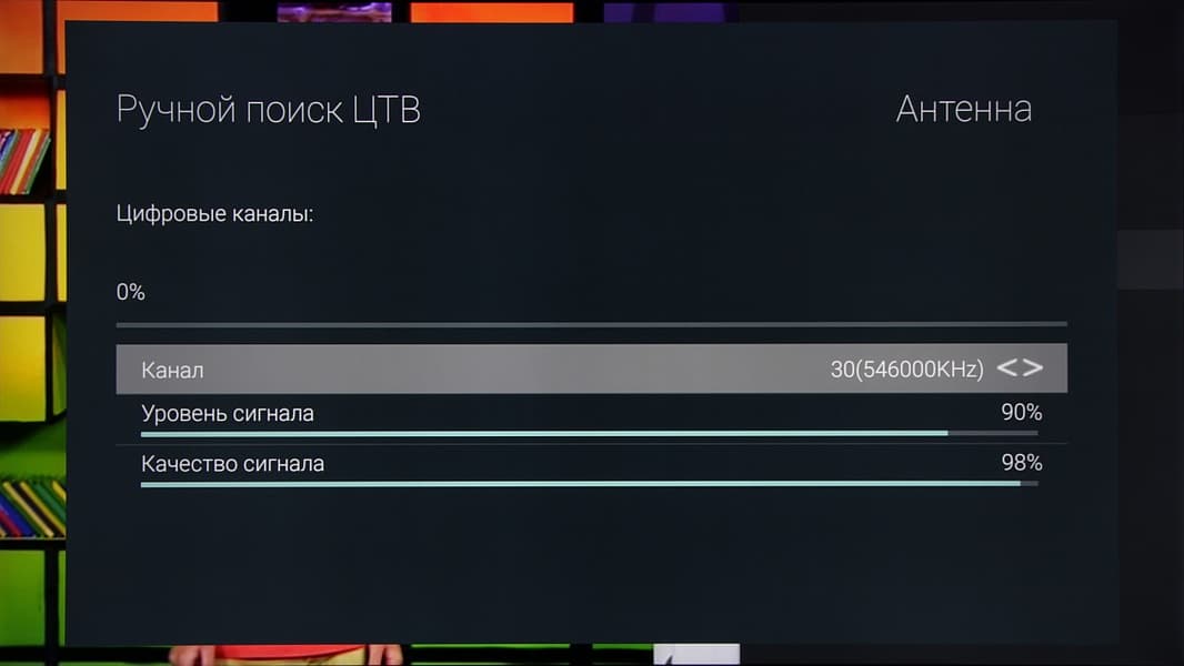 Данная модель, помимо спутникового тюнера, оснащена тюнером, принимающим аналоговый и цифровой сигнал эфирного и кабельного вещания. Качество приема цифровых каналов на дециметровую антенну, закрепленную на стене здания (почти прямая видимость в направлении на телевышку в Бутово, расположенную на расстоянии 14 км), было на высоком уровне — без проблем удалось найти все ТВ-каналы и три радиоканала в трех мультиплексах.