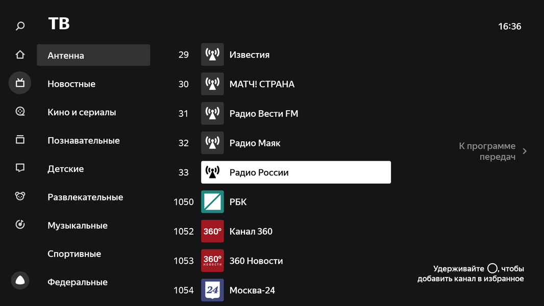 Отметим, что в телевизоре нет продвинутых функций для улучшения качества изображения, поэтому картинка каналов в SD-качестве выглядит крайне непривлекательной. Присутствует список любимых каналов. Есть базовая поддержка электронной программы передач — можно посмотреть, что именно идет или будет идти на текущем и других каналах и прочитать краткое описание.