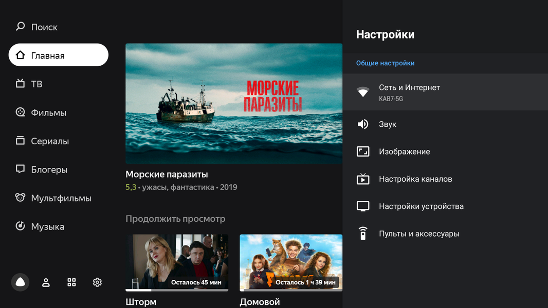 Разработчики Яндекс.ТВ разумно решили не ошеломлять зрителя какими-то изысканными и навороченными интерфейсами. В итоге домашняя страница Яндекс.ТВ напоминает привычный интерфейс YouTube в версии для Smart TV, а меню с настройками осталось в оригинальном для Android TV виде.