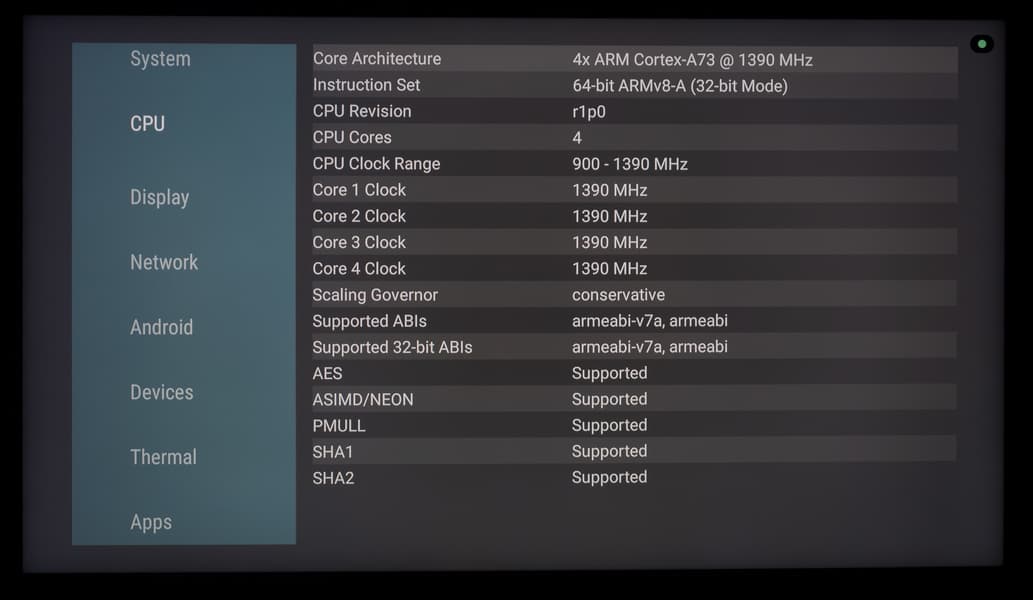 После установки информационного приложения AIDA64 через скачанный APK-файл мы получили доступ к информации по конфигурации аппаратной части рассматриваемого телевизора: