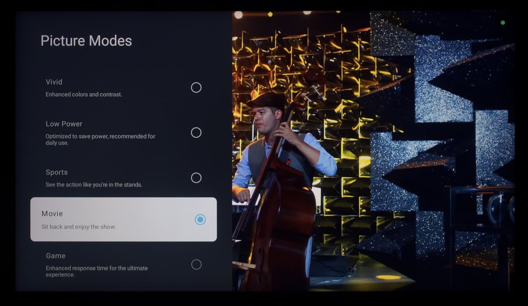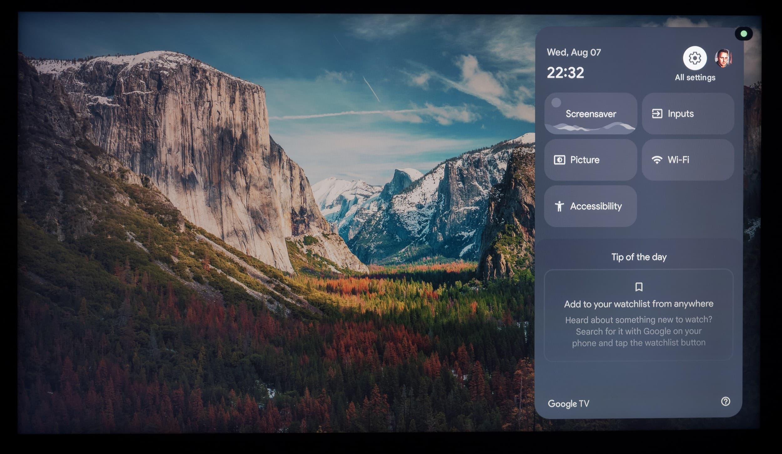 Что касается всех остальных настроек, то из-за использования оболочки Google TV они перебрались на отдельный экран, закрывающий собой воспроизводимый контент. Основной OSD-экран построен по принципам блочной структуры, со сдвигом вправо при наличии дополнительных подразделов.