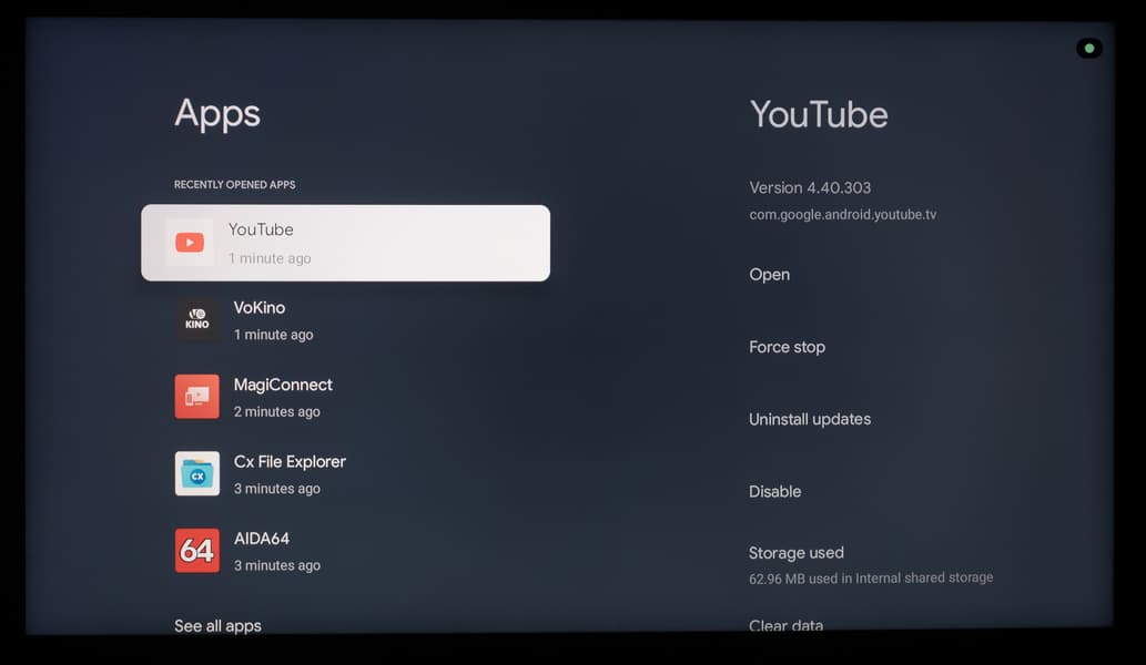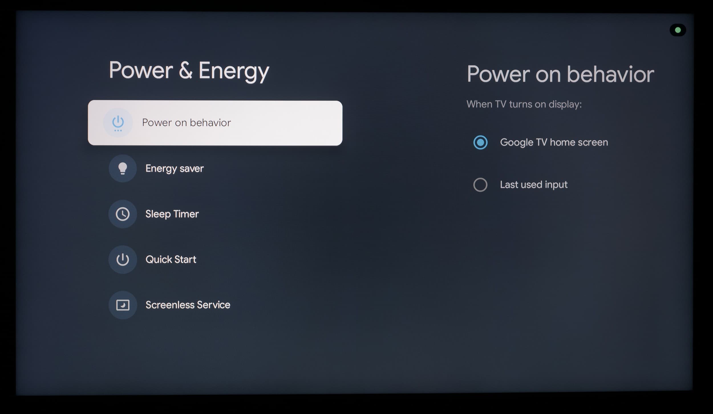 Долгое нажатие на кнопку питания (и выбор пункта «Отключить питание» в появившемся меню) или перерыв в электроснабжении переводит ТВ в режим глубокого сна. При включении из этого состояния система запускается заново, а это уже занимает гораздо больше времени — порядка минуты до полной загрузки всех элементов главного экрана и нормализации скорости работы оболочки.
