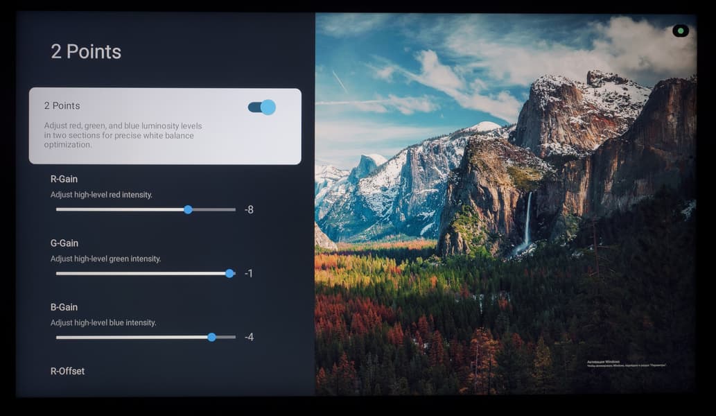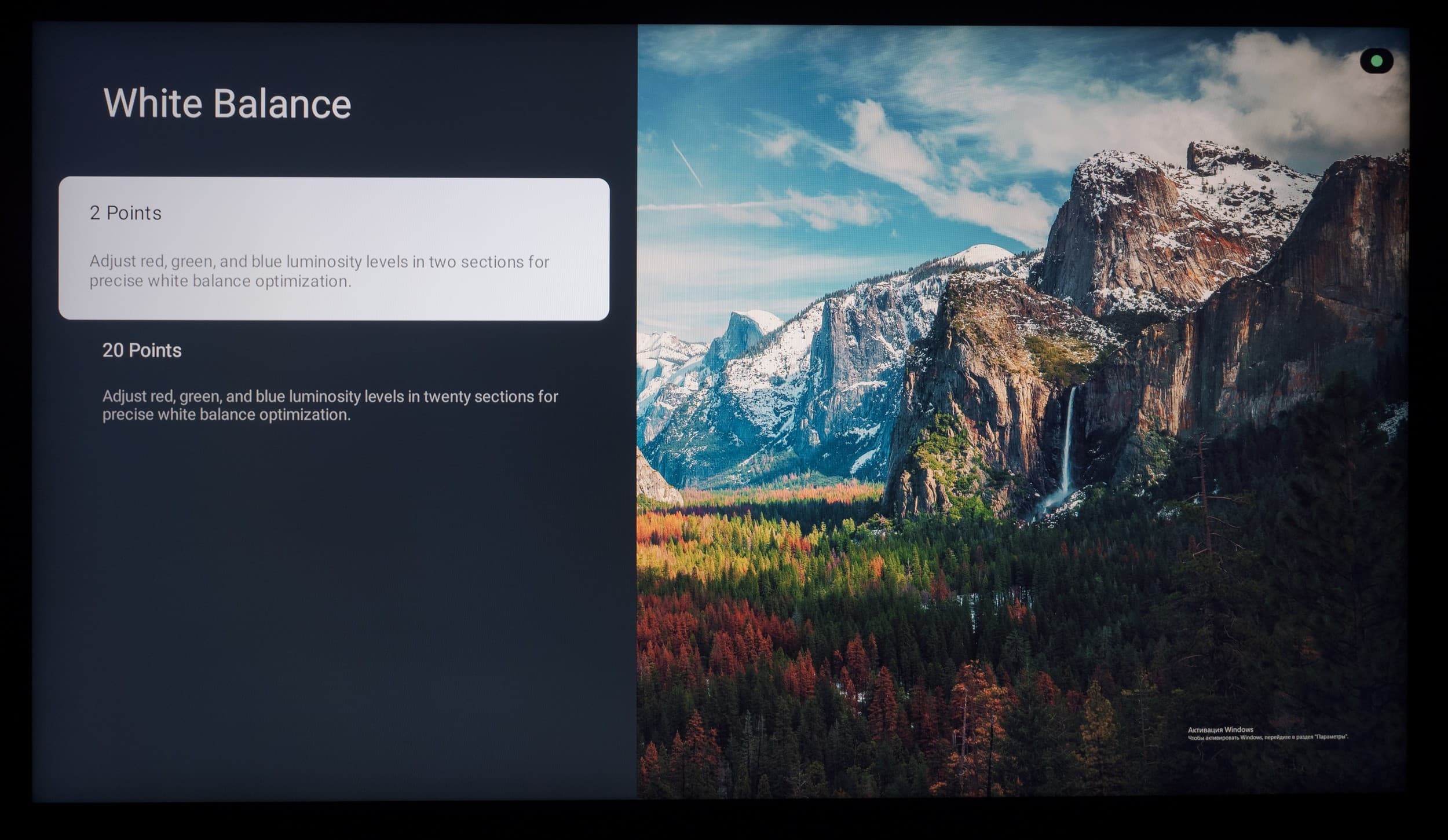 В вопросах же настройки цветовой температуры и баланса серого два режима нас приятно удивили: 6100-6220 К c максимально высокой стабильностью серого клина и отсутствием явных паразитных оттенков. Выставленный по умолчанию режим Low Power отличается классическим «холодным» тоном, а потому от него мы предлагаем отказаться еще на этапе первой настройки ТВ — слегка повышенная максимальная яркость точно того не стоит.