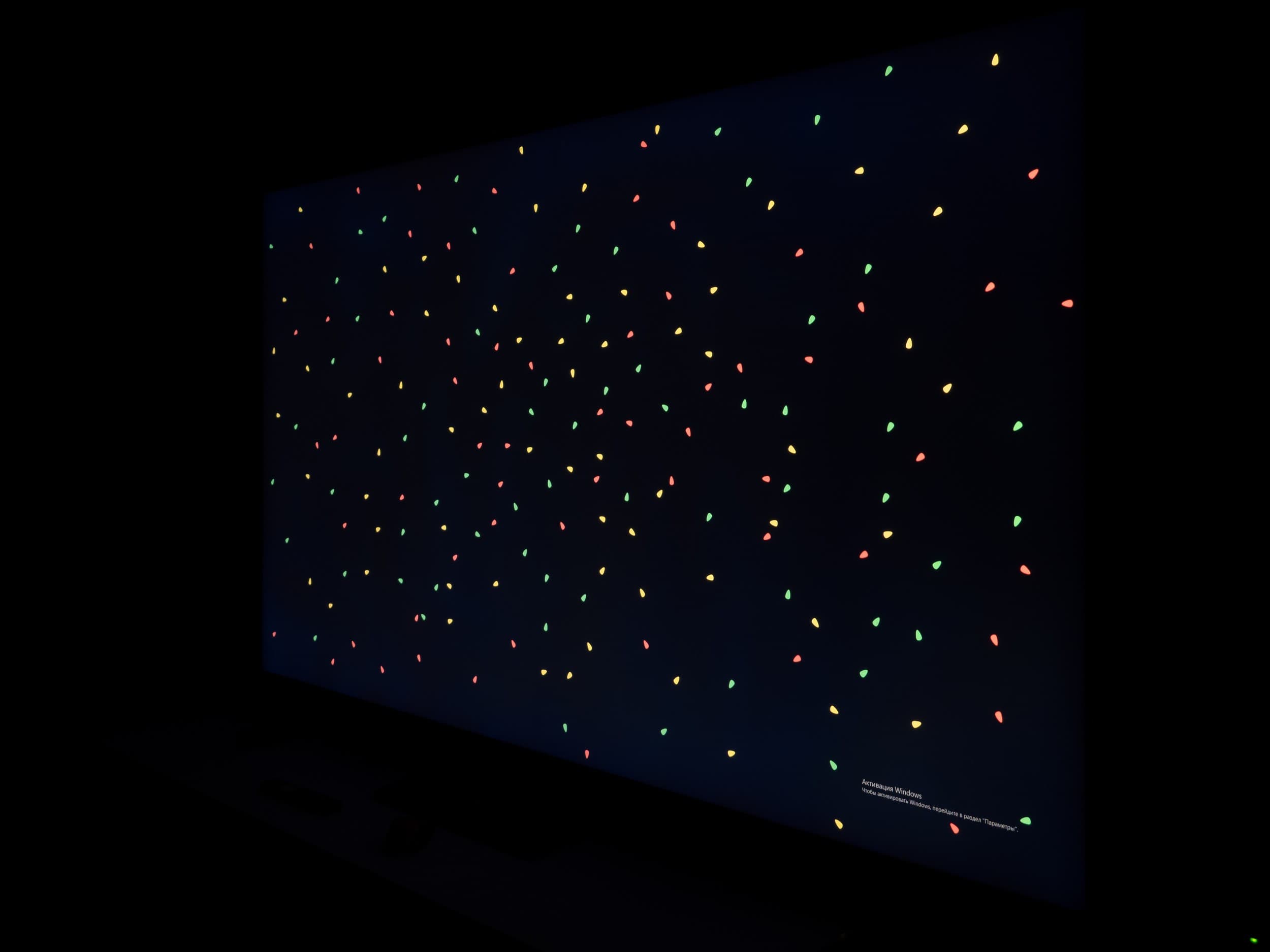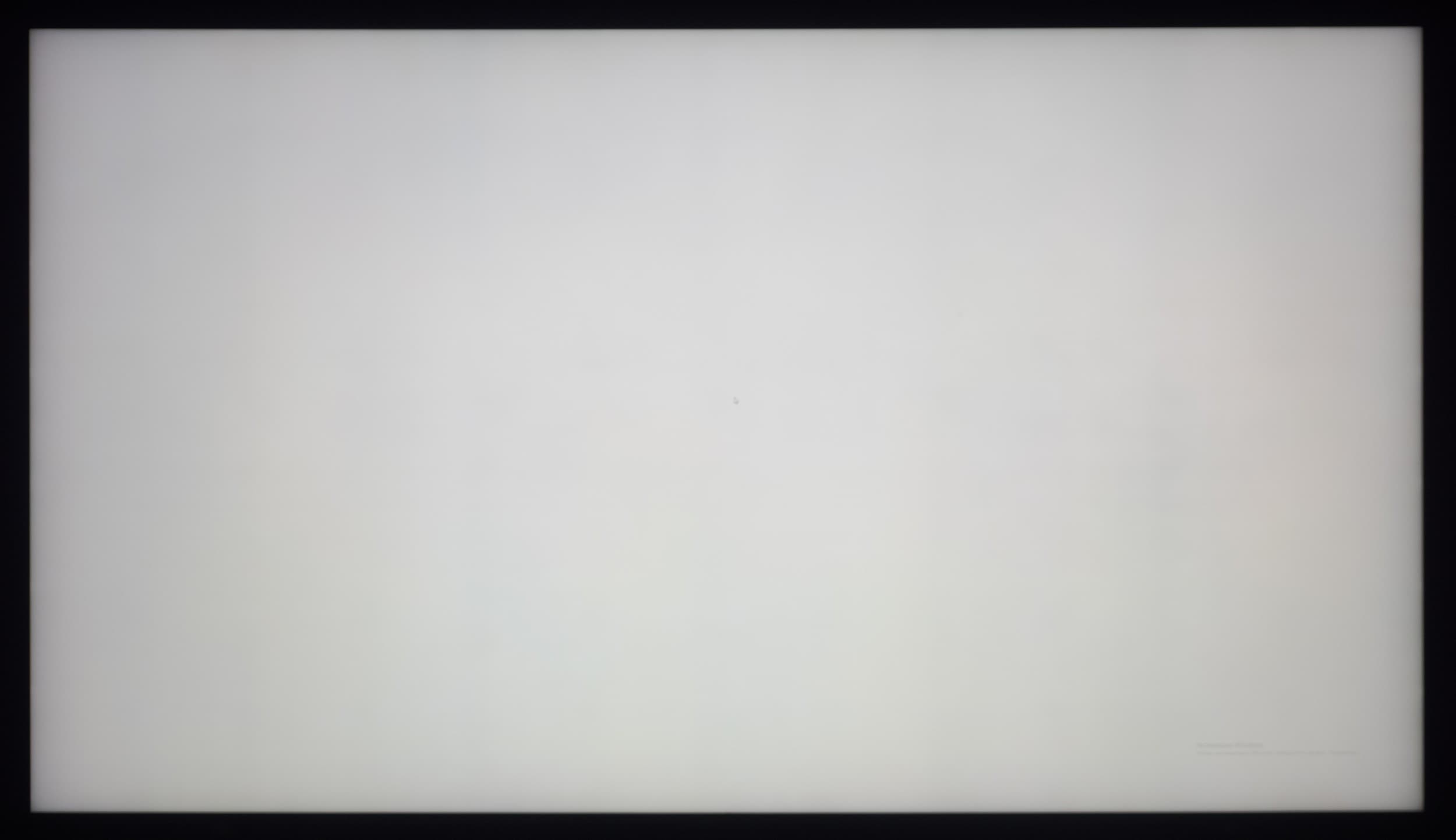 В первом случае мы видим характерное высветление черного по краям панели, но такова ситуация лишь в случае строго перпендикулярного взгляда. При его смещении в ту или стороны самая темная зона будет визуально смещаться. При этом общую равномерность подсветки мы можем оценить, как высокую. Отсутствуют явные дефекты, однородность — высокая.