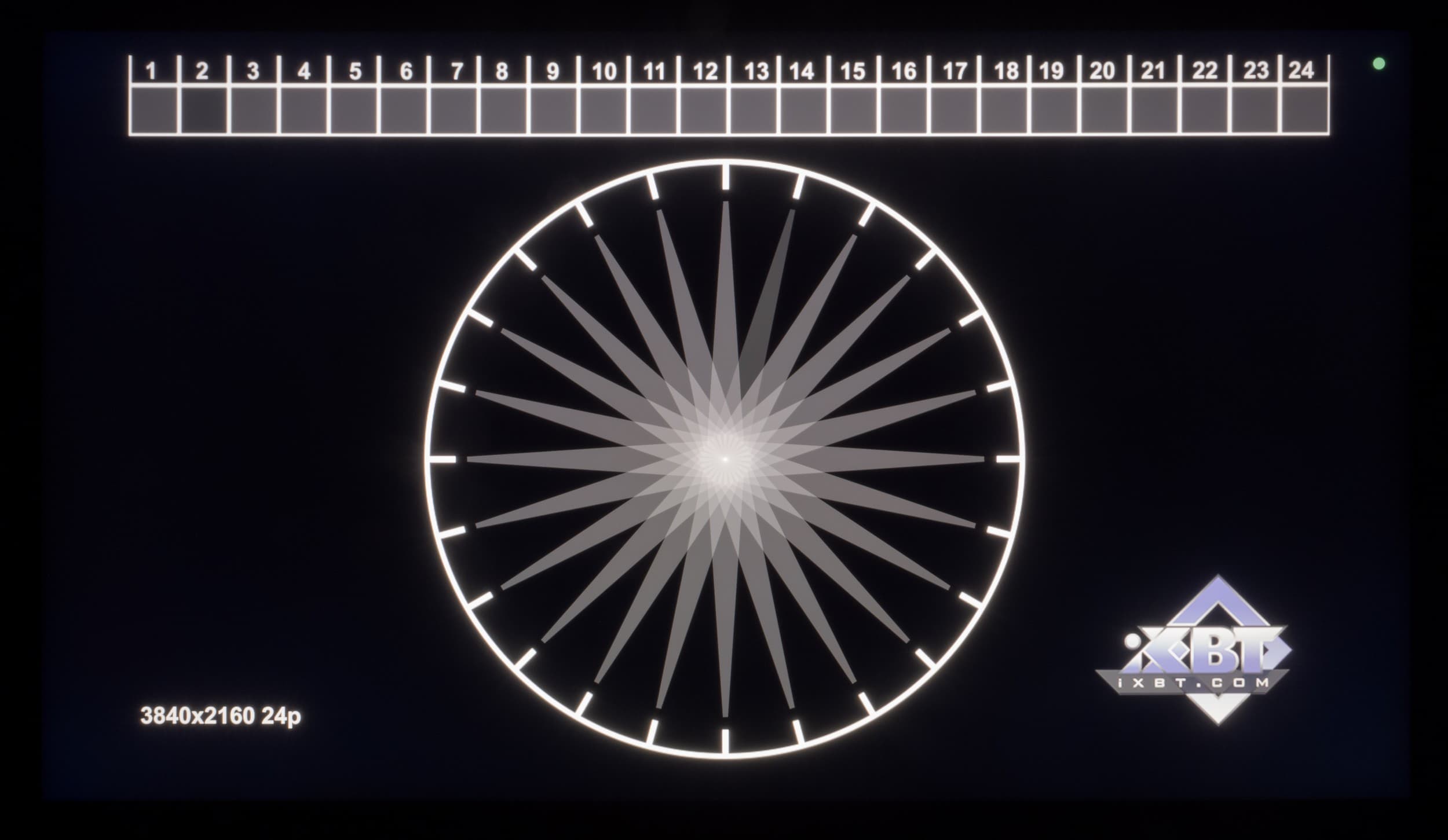 Наглядно видно, что телевизор способен выводить градиенты в 10-битном режиме более качественно, чем в стандартном 8-битном. Но в большей степени это будет актуально при выводе HDR-контента с соответствующими требованиями к ТВ. Использование же программной эмуляции до 12 бит (при снижении частоты обновления) через драйвер видеокарты не приносит видимых преимуществ над 10-битным выводом сигнала.