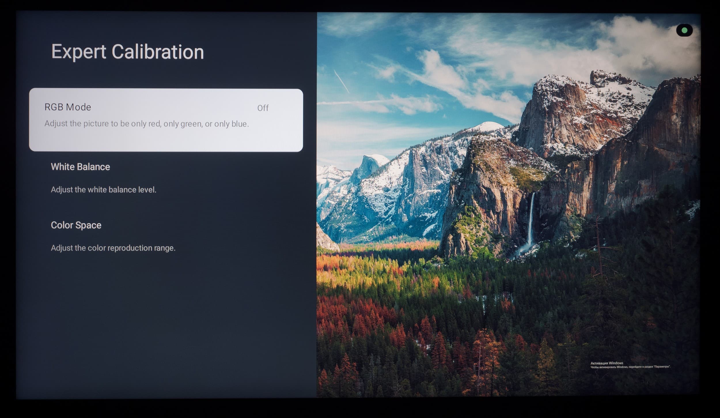 В продолжении темы меню отметим, что настройки изображения сохраняются для всех приложений сразу и для каждого из внешних входов, включая ТВ-тюнер, раздельно, еще плюс настройки для сигнала HDR.