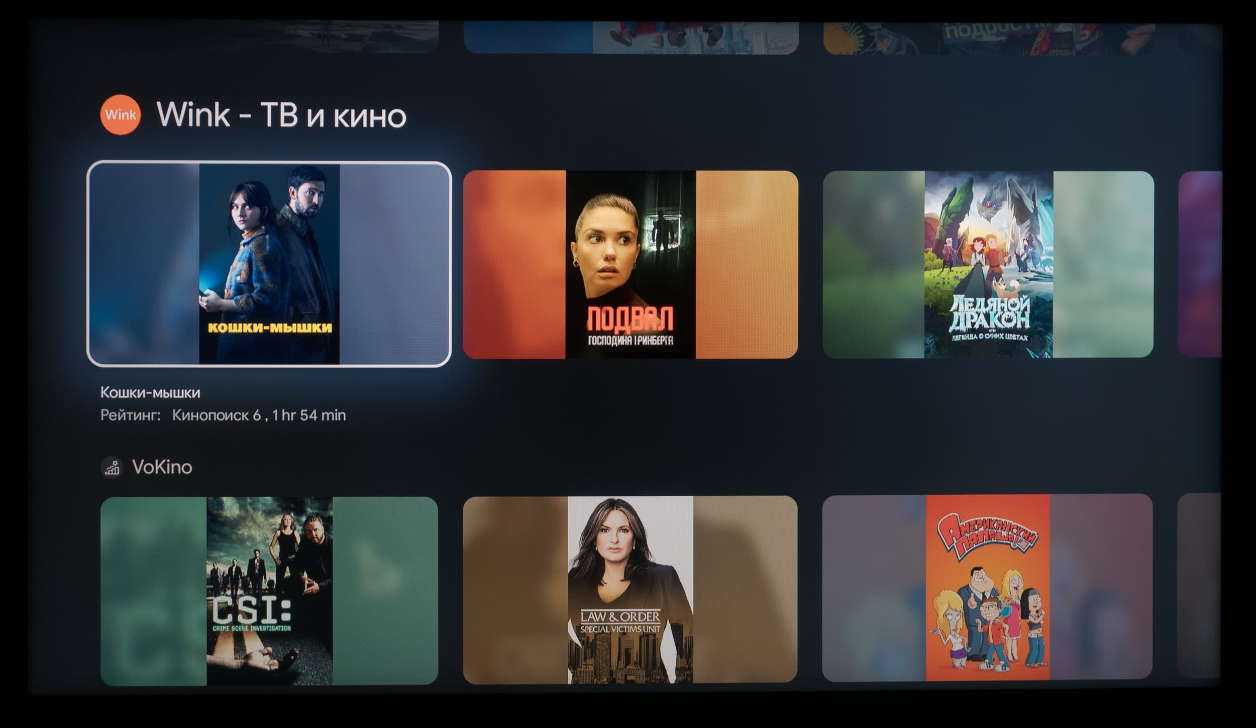 Первоначальную настройку системы можно провести с помощью входа в свой Google-аккаунт прямо с телефона, что позволяет сэкономить львиную долю времени. Главный экран Google TV многим хорошо знаком, поскольку на 95% соответствует крайне популярной программной оболочке Android TV.