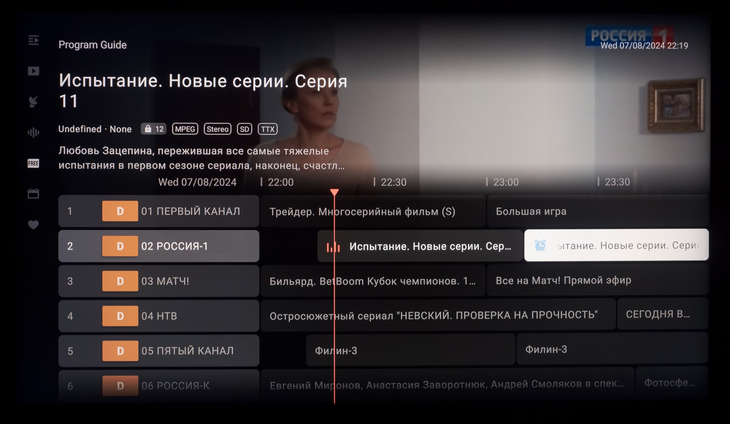 - Приятно и стильно оформленный экран работы с ТВ-программой и IP TV — встроенное приложение TCL Channels