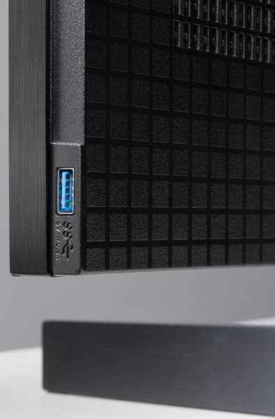 Телевизор выглядит крайне сдержано, но при этом «премиально» и дорого. Дизайнеры поработали над тем, чтобы скрыть всю электронную начинку под один сплошной кожух, без выделенных под интерфейсные разъемы увеличенных в габаритах сегментов.