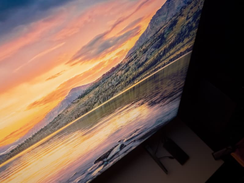 В случае же отклонения взгляда от нормали, при выключенных системах управления локальной подсветкой, можно стать свидетелем классического результата по высветлению черного поля, даже у VA-панели со статическим коэффициентом контрастности близким к 6000:1.