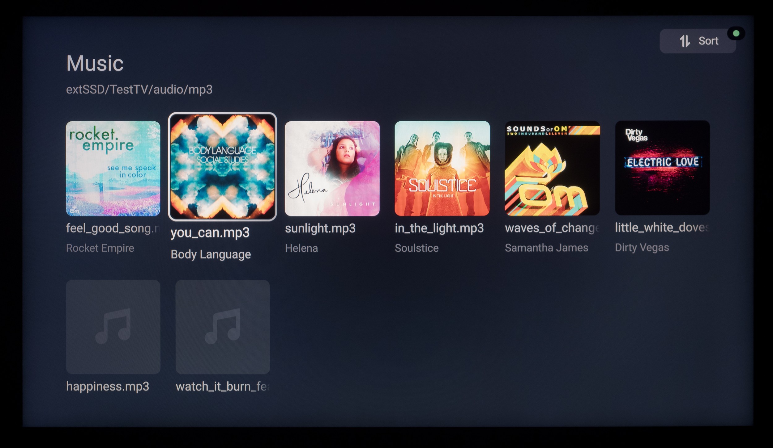 В ходе тестирования выяснилось, что телевизор полноценно поддерживает USB-накопители с файловыми системами FAT32, exFAT и NTFS, с кириллическими названиями файлов и папок проблем не возникает.
