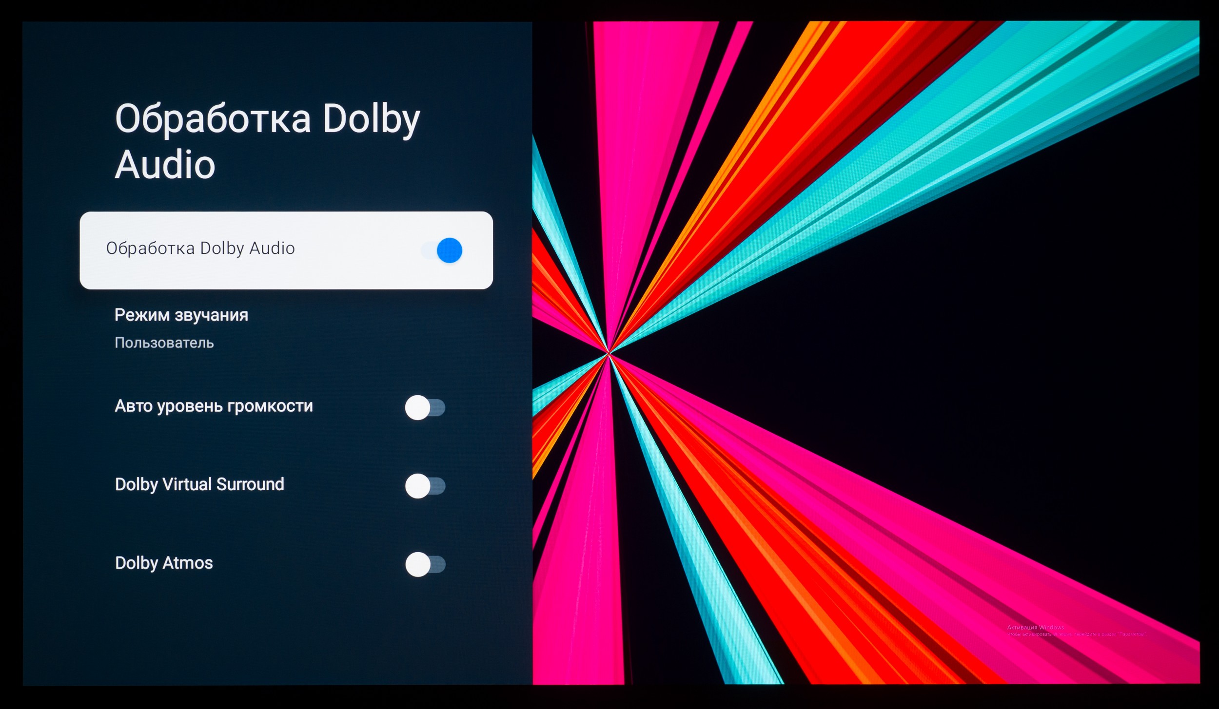 Наполнение контекстного меню может отличается в зависимости от источника изображения, воспроизводимого контента, его формата и доступных HDR-метаданных. В некоторых случаях часть настроек, ответственных за цветопередачу и качество изображения, может быть недоступна пользователю. Также включение некоторых функций приводит к ограничению работы других, они становятся недоступны (заблокированы). Впрочем, в случае с Google TV/Android TV таких ограничений всё же меньше, чем на других платформах, это факт.