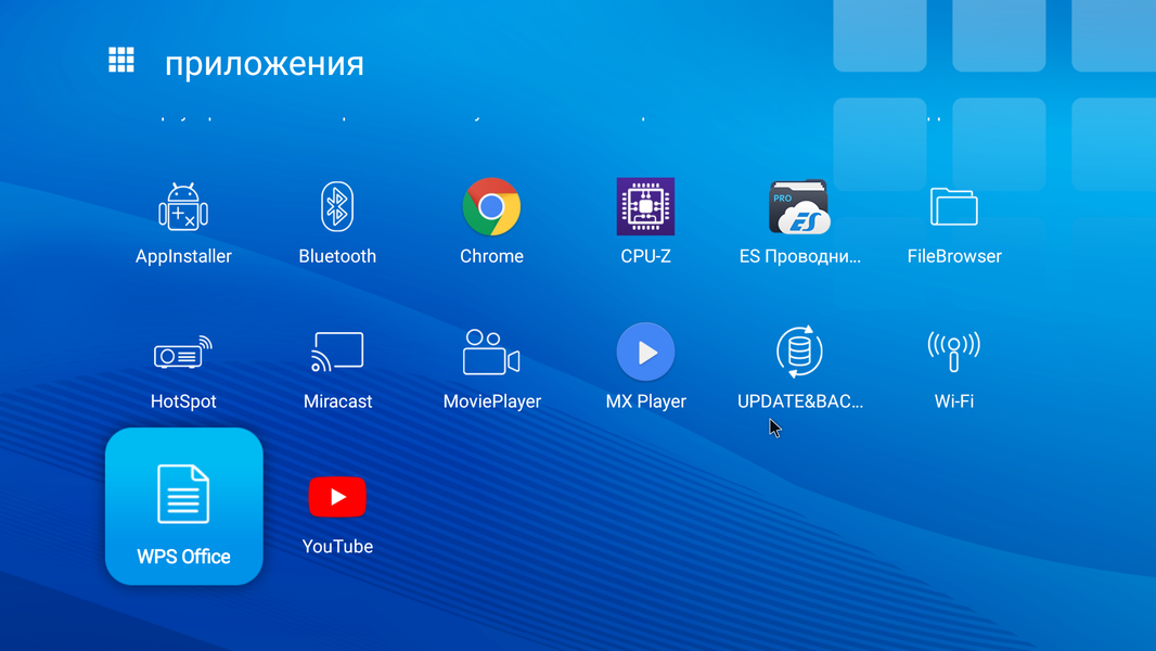 Штатное приложение WPS Office позволяет на проекторе просматривать файлы PDF и популярных офисных форматов. Разумеется, можно установить и другое приложение аналогичного характера. Впрочем, прежде чем что-то показывать аудитории, рекомендуем проверить, как содержимое файлов выводится на экран, все ли в порядке с форматированием, отображением элементов и устраивает ли скорость отрисовки. Может быть лучшим вариантом будет перевести страницы или слайды в растровый графический формат. Так как подходящее приложение для воспроизведения практически любых аудио- и графических и файлов других форматов можно уставить из файлов APK, то мы ограничились только проверкой поддержки аппаратного декодирования видеопотоков.