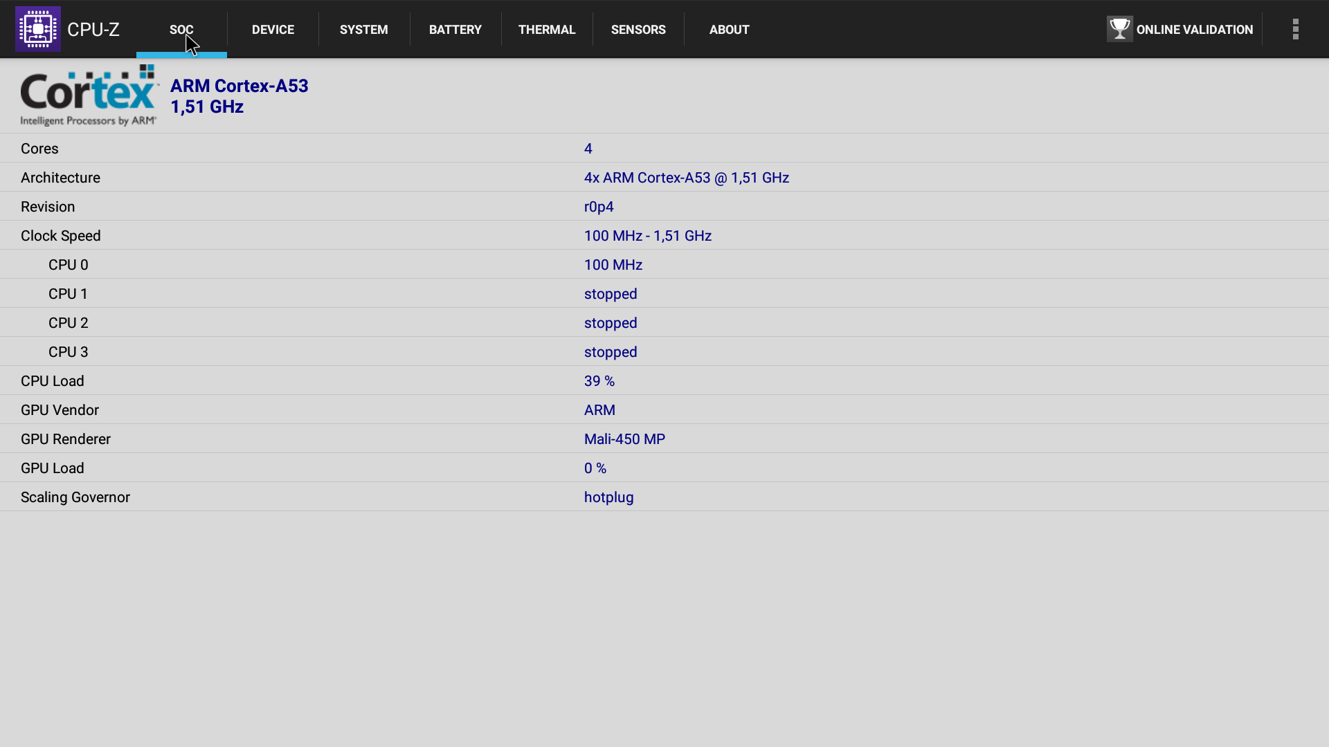 Отметим, что CPU-Z показывает аппаратную конфигурацию, которая по частотам ядер отличается от заявленной производителем:
