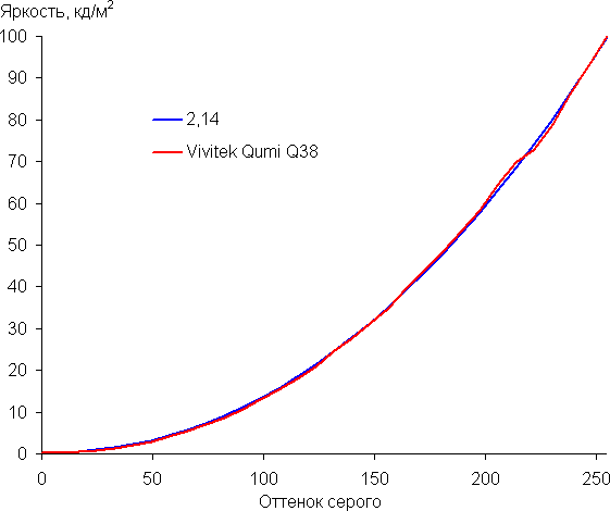Аппроксимация полученной гамма-кривой дала значение показателя 2,14, что немного меньше стандартного значения 2,2, при этом реальная гамма-кривая немного отклоняется от аппроксимирующей функции.
