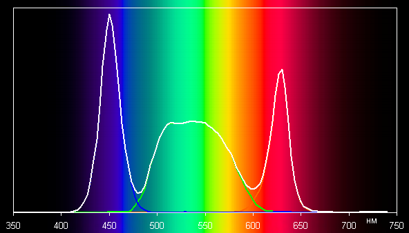 Видно, что компоненты хорошо разделены, чем и достигается уширенный цветовой охват.