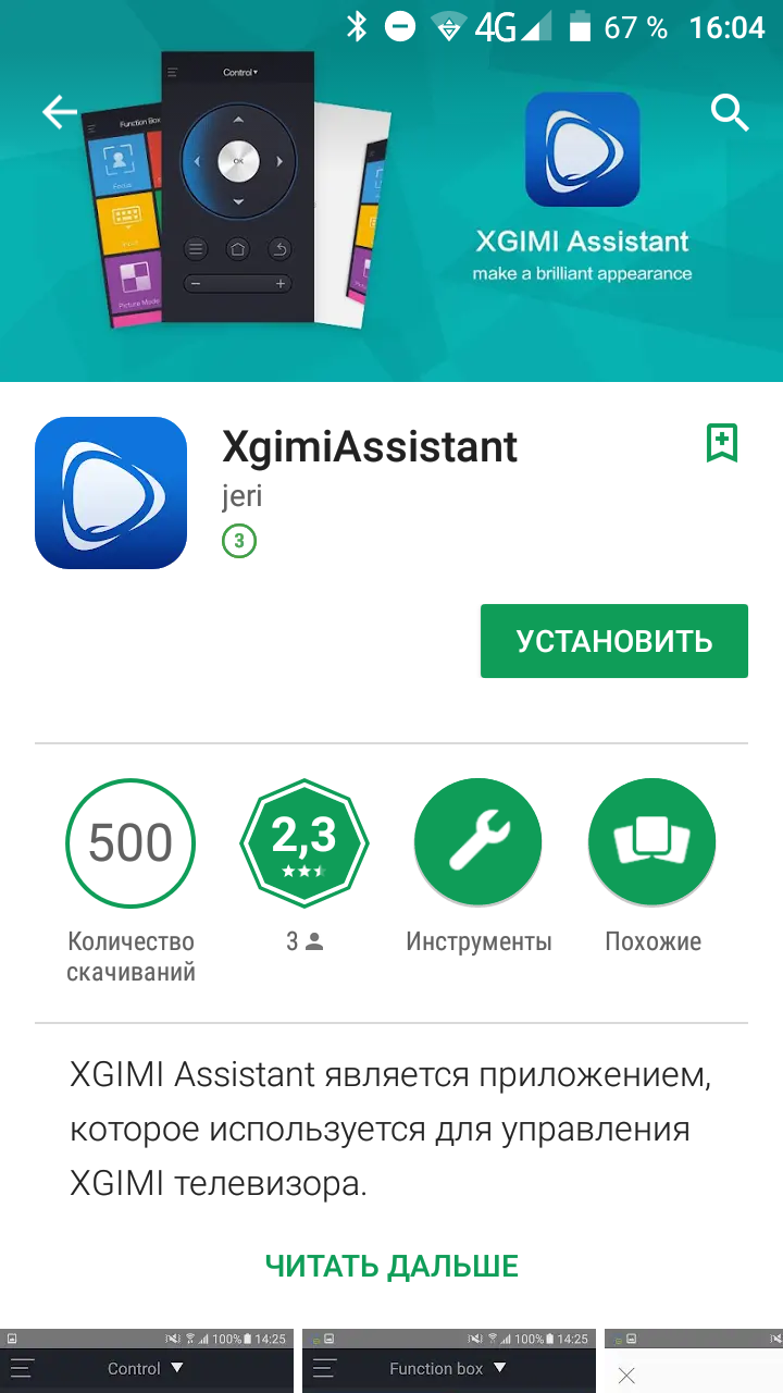 Альтернативный способ управления предоставляет программа XgimiAssistant, устанавливаемая на мобильное устройство.