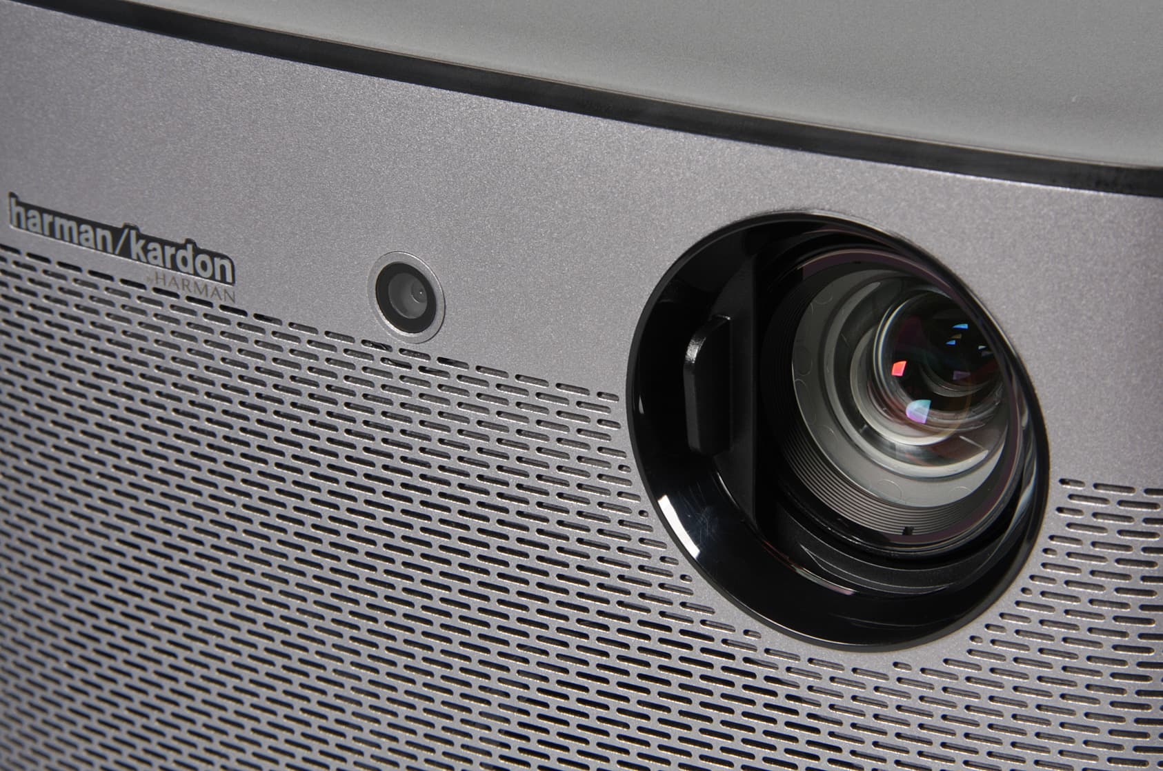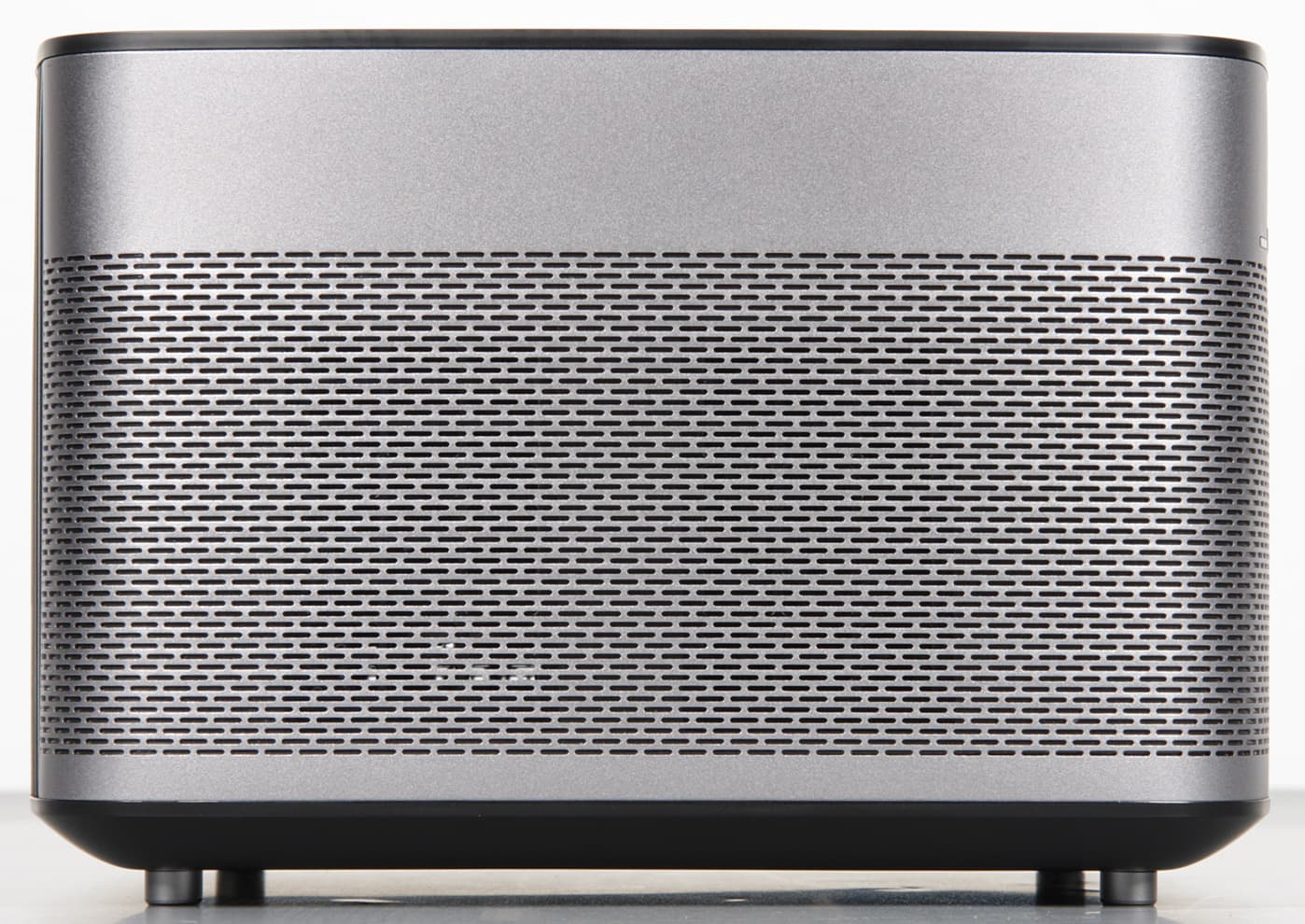 Верхняя, нижняя и задняя панели изготовлены из черного пластика с матовой поверхностью. Решетчатый кожух, огибающий корпус проектора, изготовлен из алюминиевого сплава и имеет стойкое серебристое покрытие. На передней панели находятся индикатор состояния, окошко видеокамеры, неглубокая ниша объектива, а за решеткой расположены два фронтальных громкоговорителя с круглыми диффузорами.