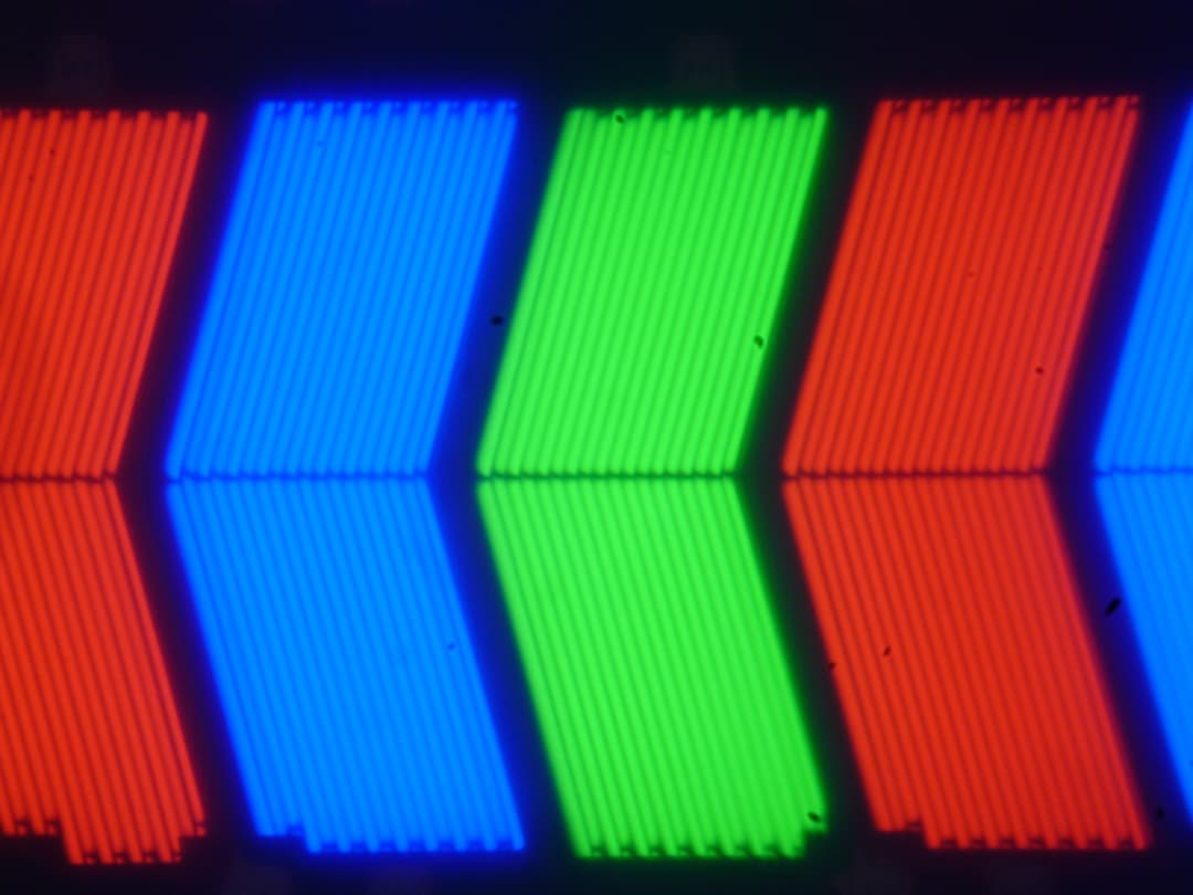 Выявленные характеристики экрана позволяют предположить, что в данном телевизоре установлена матрица типа IPS (видимо, производства LG). Микрофотографии не противоречат этому (черные точки — это пыль на матрице фотоаппарата):