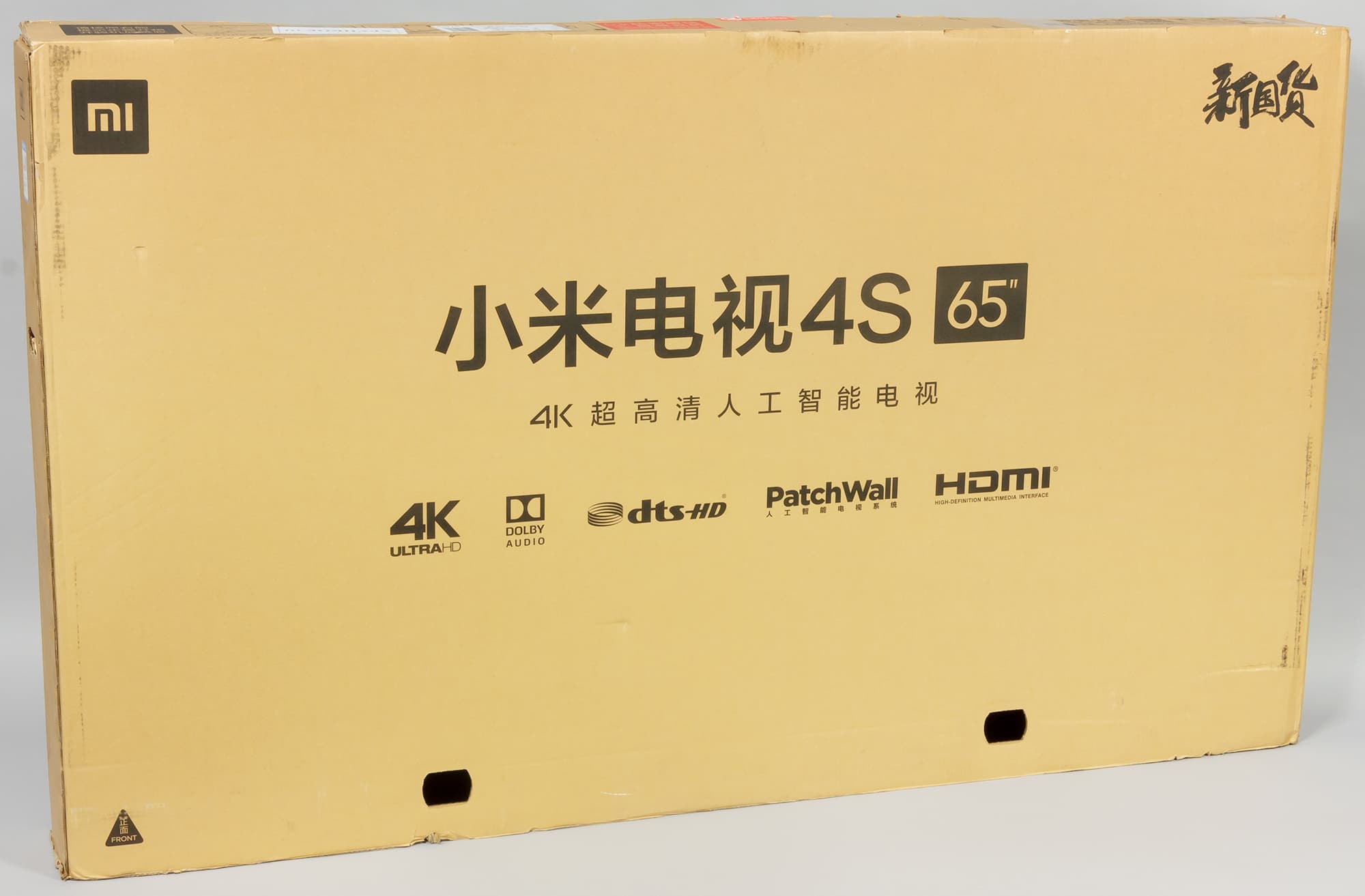 Упакован телевизор и все к нему в прочную узкую скромно оформленную коробку из гофрированного картона. Для переноски в коробке проделаны боковые прорезные ручки.