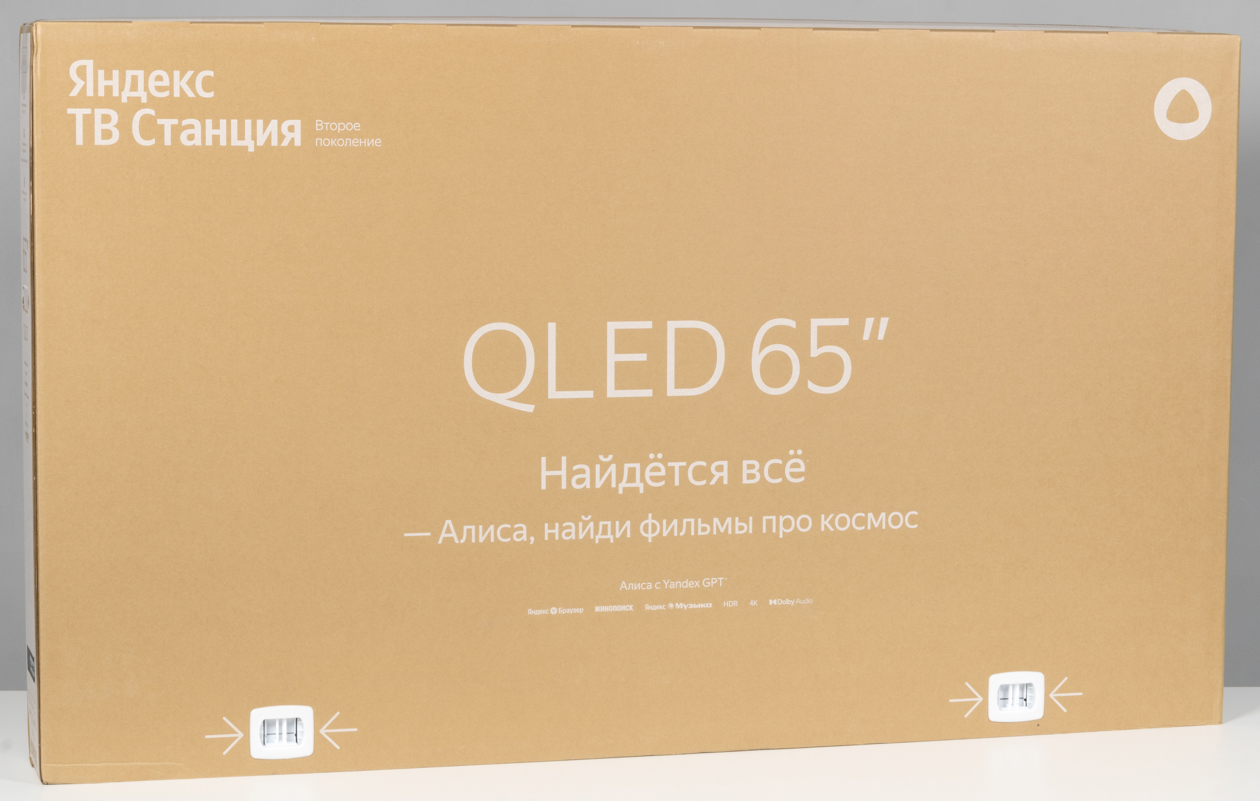 К нам в руки попал старший представитель серии с диагональю 65 дюймов, который будет интересен всем тем, кто присматривается к крупным ТВ с понятной системной оболочкой, рассчитанной на использование российских онлайн-сервисов предоставления контента, а также для удобного общения с продвинутой моделью YandexGPT (в том числе в версии Pro, если у вас оформлена соответствующая подписка) и управления «умным домом» с большого экрана.