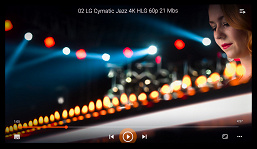 Большинство из опробованных современных файлов высокого разрешения без проблем воспроизводились в режиме аппаратного декодирования, вплоть до вариантов H.265 при 60 кадр/с. Телевизором поддерживается воспроизведение видеофайлов HDR (HDR10, HLG), но без дополнительных опций настройки, а в случае файлов с 10 бит на цвет, согласно визуальной оценке, градаций оттенков ощутимо больше, чем у 8-битных файлов.