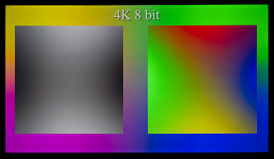 Качественную оценку мы начнем с демонстрации градиентов при выводе изображения в 8-битном и 10-битных режимах (программная эмуляция со стороны ТВ либо GPU в случае подключения к ПК/ноутбуку и частотах 24-30 Гц).
