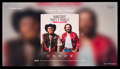 В разделе «Каталог» можно найти все основные рекомендации по просмотру фильмов, сериалов и развлекательных программ, есть специальные подборки по темам/категориям. Для прослушивания музыки оболочка предлагает воспользоваться встроенным плеером сервиса «Яндекс Музыка», куда после захода в аккаунт уже будет загружена вся ваша музыка (все подборки и плейлисты) — доступ предлагается в разделе «Музыка».