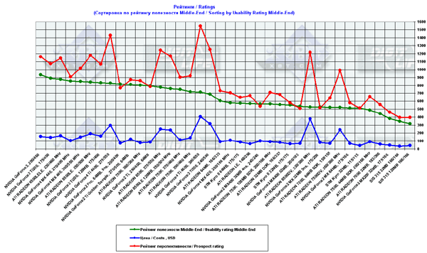 - сводные диаграмма по видеокартам стоимостью до $80 на базе всех стендов;