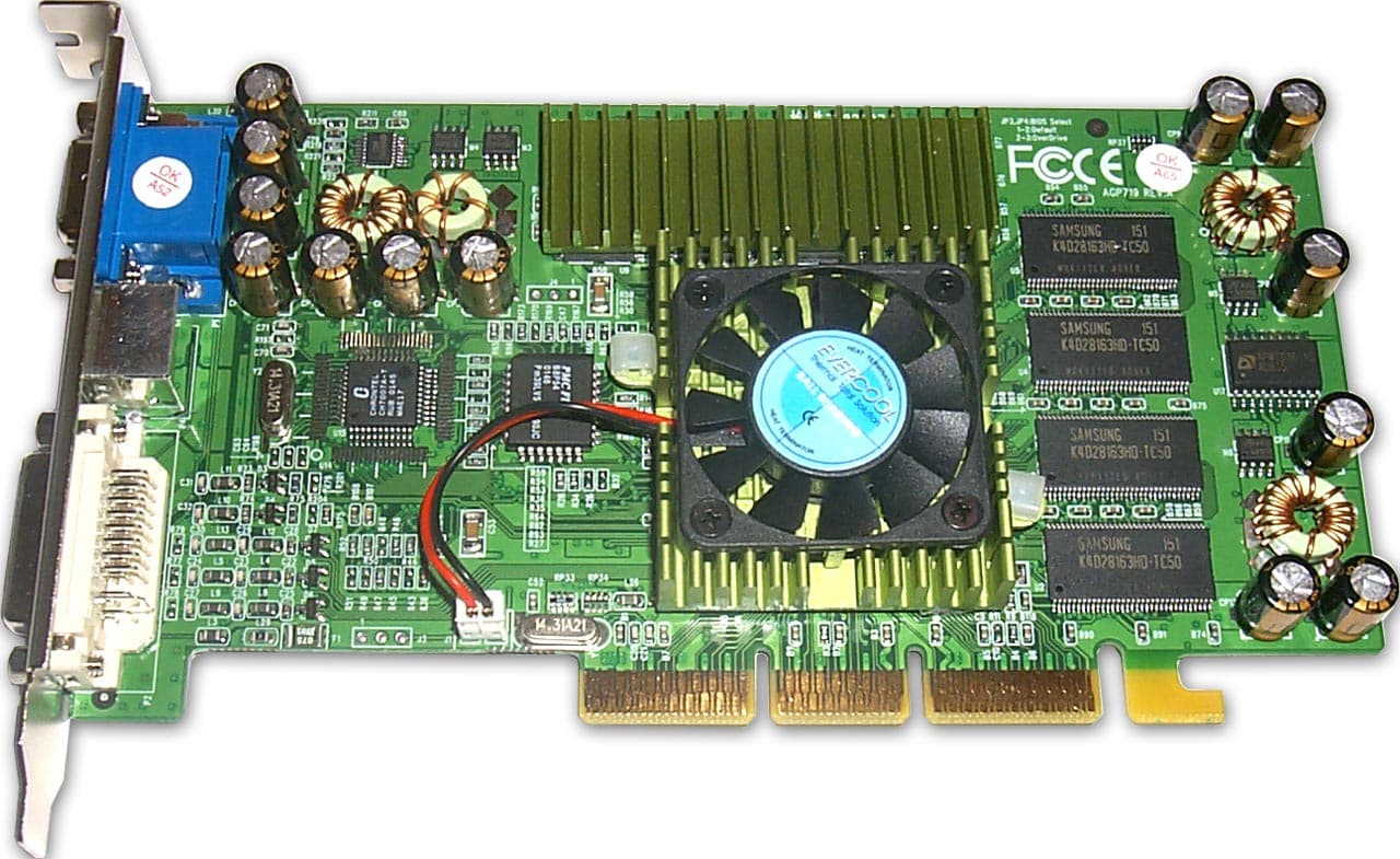 Все карты имеют AGP x2/x4 интерфейс, 128 (у карты от Gainward — 64) МБ DDR SDRAM памяти, размещенной в 8-ми микросхемах на лицевой стороне PCB.