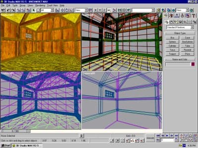 Именно на этом этапе от системы требуется максимальная производительность. В противном случае вы рискуете выпить слишком много кофе, пока маломощная машина (со слабым CPU или видео акселератором) со скоростью 0.5-1 fps, примерно как у верткой черепахи, будет осуществлять все требуемые операции. Посудите сами — если после перемещения/поворота какого либо объекта придется ждать обновления экрана десятки секунд, то ни о какой продуктивной работе не может быть и речи. Хороший OpenGL акселератор существенно ускоряет процесс перерисовки трехмерных объектов в окнах, однако, необходимо понимать, что любой ускоритель можно "поставить на колени" полностью текстурированной сценой с сотнями тысяч треугольников. Естественно, видеокарта должна, во-первых, поддерживать ускорение в окне (именно поэтому нельзя было использовать мощь Voodoo2 в этой программе) и, во-вторых, иметь полноценный OpenGL драйвер. Хотя 3DMAX с версии 2.0 может работать через D3D, но OGL драйвер, как правило, быстрее и дает множество приятных дополнительных возможностей, например, включенную "по-умолчанию" коррекцию текстур.