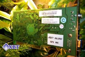 Анализируя внешний вид ABIT Siluro GF2 MX, нетрудно заметить, что о повторении эталонного дизайна от NVIDIA в данном случае речи не идет. То есть, если подобные карты будут появляться в продаже и в ОЕМ-поставках, то не надо пугаться внешнего вида этих плат, не похожего на многие аналоги на базе GeForce2 MX. PCB у ABIT Siluro GF2 MX зеленого цвета, на ней смонтирован TV-out, причем имеются два разъема: S-Video и RCA, что весьма похвально с точки зрения многочисленных российских пользователей, не у каждого из которых есть видеотехника с S-Video-входом. На чипе установлен ничем не примечательный и вполне традиционный активный кулер.