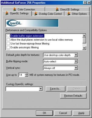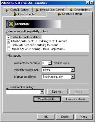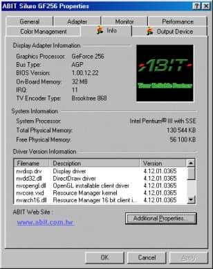 Рассмотрим особенности поставляемых фирмой ABIT со своей видеокартой драйверов. На момент тестирования они имели версию 3.65: