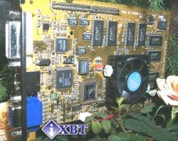 Плата базируется на AGP 2x/4x интерфейсе, имеет 32 Мбайта SDR SDRAM памяти, размещенной в 16-ти микросхемах, расположенных на обоих сторонах PCB:
