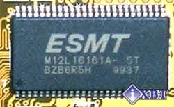 Микросхемы памяти произведены фирмой ESMT и имеют время доступа 5ns, что свидетельствует о том, что данная память может работать на частоте 200 МГц. NVIDIA рекомендует использовать в SDR-картах 166 МГц память, поэтому номинальная частота работы памяти на данной плате (как, впрочем, и на всех остальных картах этого класса) снижена до 166 МГц.