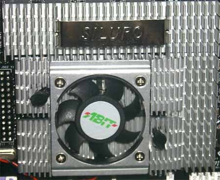 Любопытный дизайн предложили инженеры ABIT для центрального радиатора, у которого чем дальше от центра ребра, тем они становятся ниже. На охлаждающей способности кулера это не сказывается, а карта приобретает оригинальный шарм, отличающий ее от других.