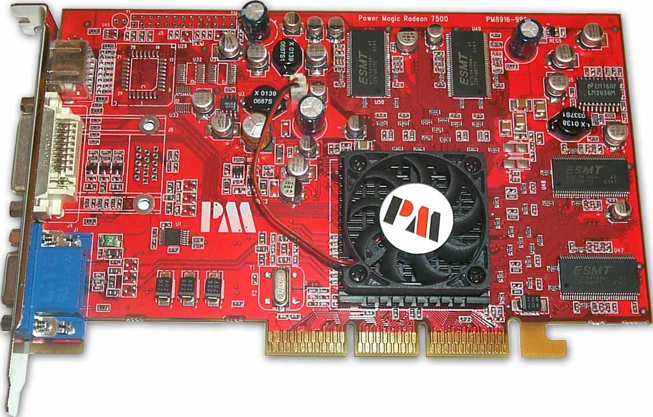 Прежде всего я кратко познакомлю читателей с новой версией карты от PowerMagic на базе RADEON 7500. Буквально через несколько дней после выхода нашего материала по семейству подобных плат от этой компании на рынке появилась новая вариация 7500-го RADEON'а, представляющая собой уже не просто карту от ATI, вложенную в коробку PowerMagic, а изделие, над которым поработали инженеры этой китайской фирмы. Впрочем, как вы увидите ниже, эталонный дизайн полностью соблюден.