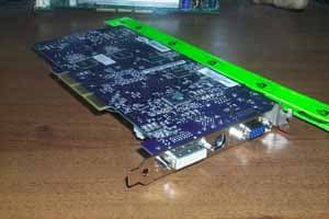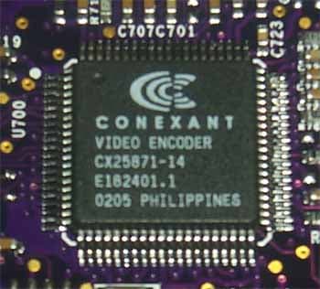 Если рассматривать карты дальше, то заметим, что у обеих плат распаяны гнезда DVI и d-Sub. Подключение двух CRT-мониторов осуществляется при помощи переходника DVI-to-VGA, который входит в комплект поставок. Обе карты оснащены Tv-out, который осуществляется при помощи уже хорошо знакомого кодека Conexant: