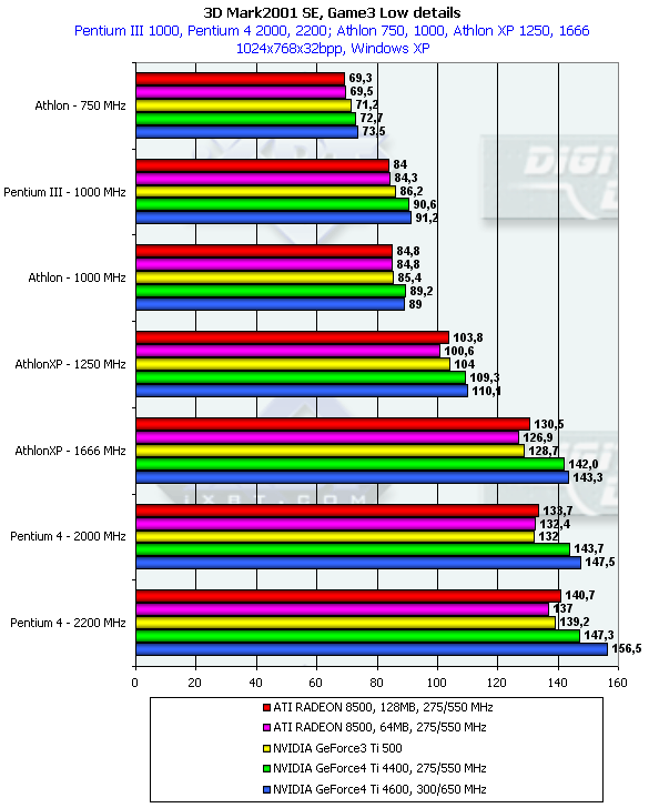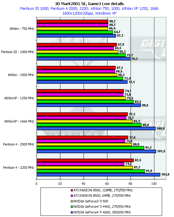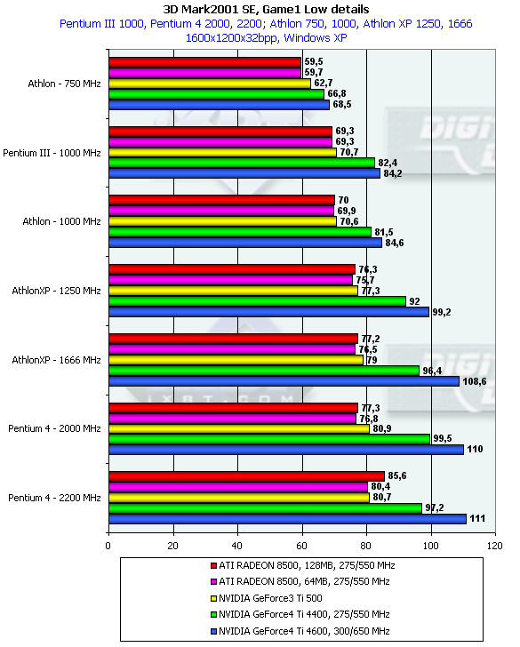 А Game3 говорит, что разрешение 1600х1200 — не помеха для того, чтобы маломощные процессоры и платформы низвели всю мощь GeForce4 Ti.