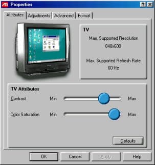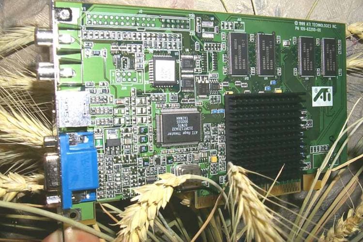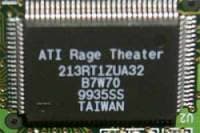 Как я выше уже сказал, помимо самого чипсета на видеокарте установлен и чип ATI RAGE Theater. Этот процессор управляет выводом изображения на телевизор (на плате имеются разъемы S-Video и RCA), а также позволяет принимать видеопоток с аналогового входа (разъем RCA) и захватывать полноразмерное PAL или NTSC изображение.