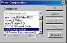 Как видим, для сжатия потока пользователю предлагается использовать не только кодек, поставляемый фирмой ATI, но и стандартные, входящие в состав Windows. Скажу сразу, что, на мой взгляд, все перечисленные кодеки страдают выпаданием кадров, квадратичностью или лоскутообразностью изображения. Безусловно, что из них кодек от ATI — наилучший. Качество видеоролика хоть и страдает от некоторых артефактов, но все же вполне приличное. По причине того, что для просмотра AVI-ролика, записанного через VCR-кодек, нужно, чтобы он был установлен на компьютере пользователя, показать качество полученного видеоролика не представляется возможным. Тем не менее, для оценки захвата некомпрессированного видеопотока представлю небольшой ролик.