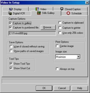 Причем, захват производится в специальный буфер StillsGallery, где можно выбирать, просматривать, удалять и записывать полученные кадры: