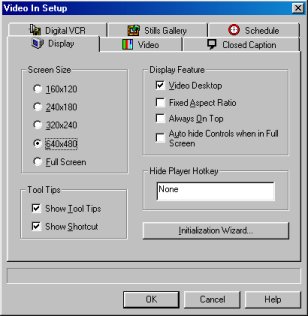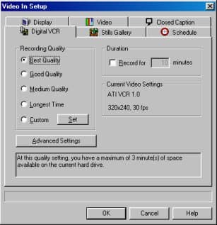 Для работы этой функции требуется установить ATI MMC, в том числе утилиту Video In, которая позволяет принимать PAL/SECAM или NTSC сигнал. У этой программы есть свое меню установок, в число которых входят: