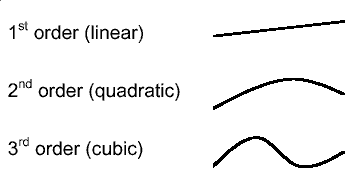 т.е. как набор из трех полиномов n степени от некой общей переменной (параметрическое задание). Соответственно, если полигоны первой степени, то мы получаем прямую, если второй, то так называемую "квадратную" кривую, если третьей, то кубическую.